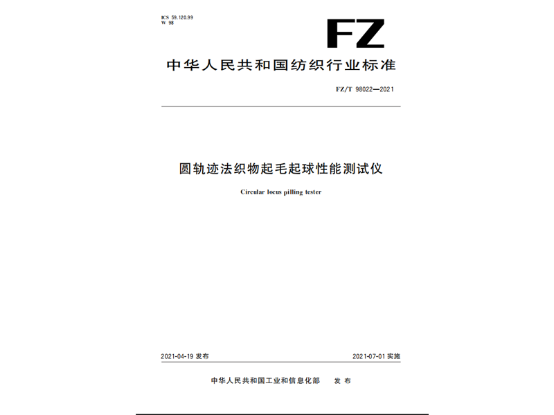 參與起草《圓軌跡法織物起毛起球性能測試儀》(FZ∕T 98022-2021),該標(biāo)準(zhǔn)由中華人民共和國工業(yè)和信息化部于 2021-04-19 發(fā)布