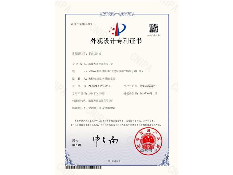 中國外觀設(shè)計專利:手套切割機(ZL2024 3 0334433.5)
