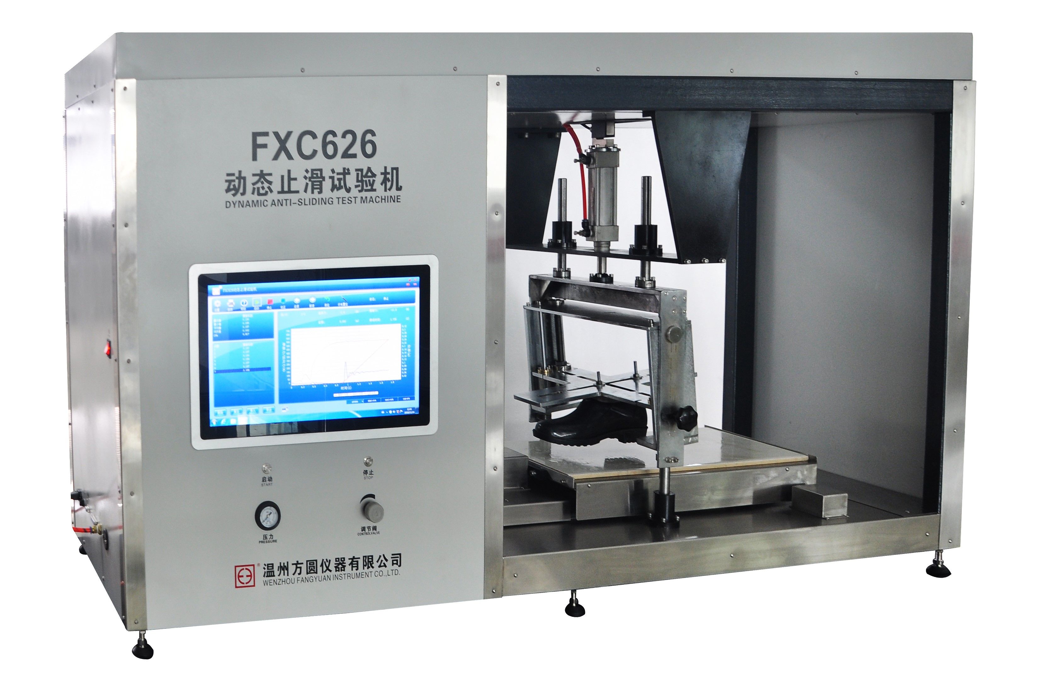 止滑試驗(yàn)原理:將被測(cè)鞋置于測(cè)試平面上,施加規(guī)定的法向力,并相對(duì)于平面水平移動(dòng)鞋(或相對(duì)于鞋水平移動(dòng)平面),測(cè)量摩擦力和計(jì)算摩擦系數(shù)。以摩擦系數(shù)大小評(píng)價(jià)整鞋或鞋底的防滑性能。