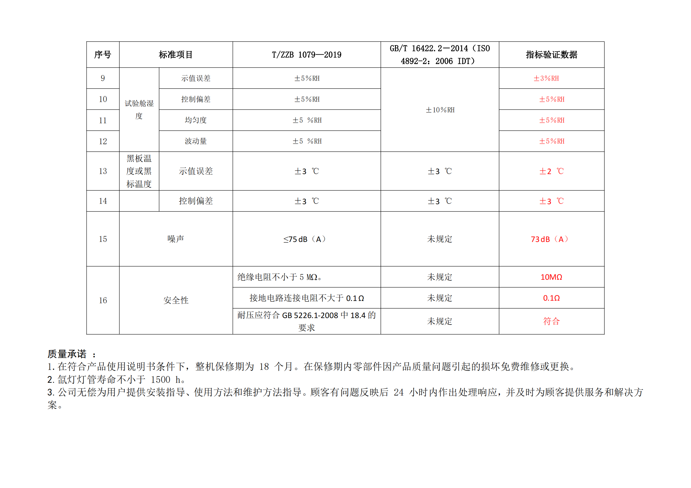 FY4500G﹢水冷式日曬氣候老化儀主要技術指標對比分析表