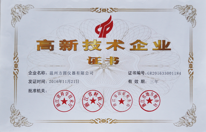 熱烈慶祝溫州方圓儀器有限公司通過高新技術(shù)企業(yè)復審,順利獲得浙江省高新技術(shù)企業(yè)證書