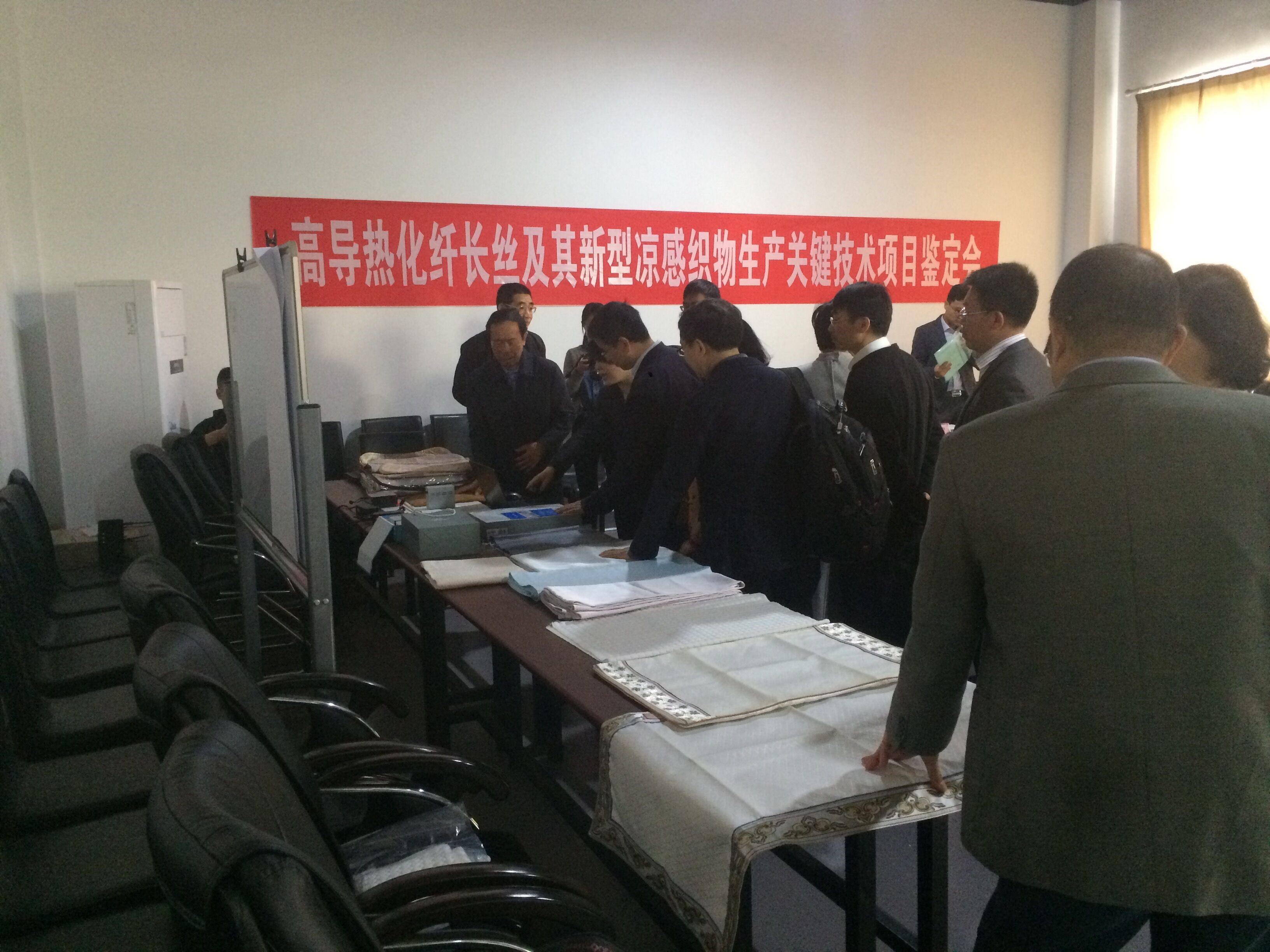2017年4月27日,中國(guó)紡織工業(yè)聯(lián)合會(huì)組織召開(kāi)了高導(dǎo)熱化纖長(zhǎng)絲及其新型涼感織物生產(chǎn)關(guān)鍵技術(shù)項(xiàng)目鑒定會(huì)(見(jiàn)圖1、圖2)。其中,由我公司和總后軍需研究所合作研制的用于測(cè)試涼感織物涼爽性能的快速響應(yīng)式FFZ415熱流式織物涼感測(cè)試儀,受到了鑒定委員會(huì)的認(rèn)可,項(xiàng)目順利通過(guò)鑒定。