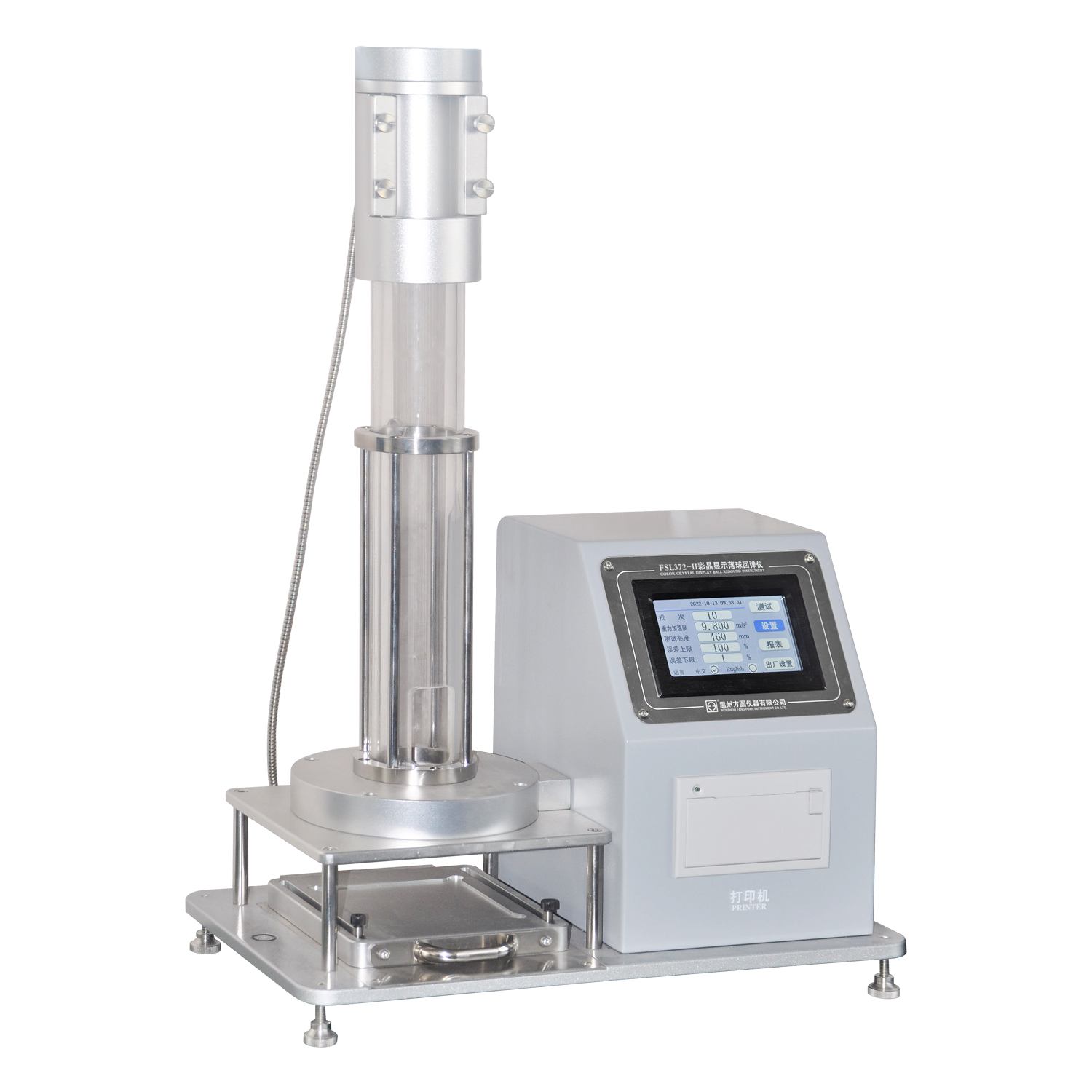 FSL372-II彩晶顯示落球回彈儀 GB/T6670-2008;ASTM美標D3574及ISO8307測試標準.同時符合日本汽車座墊用氨基甲酸乙酯泡沫SES N3296的試驗方法
