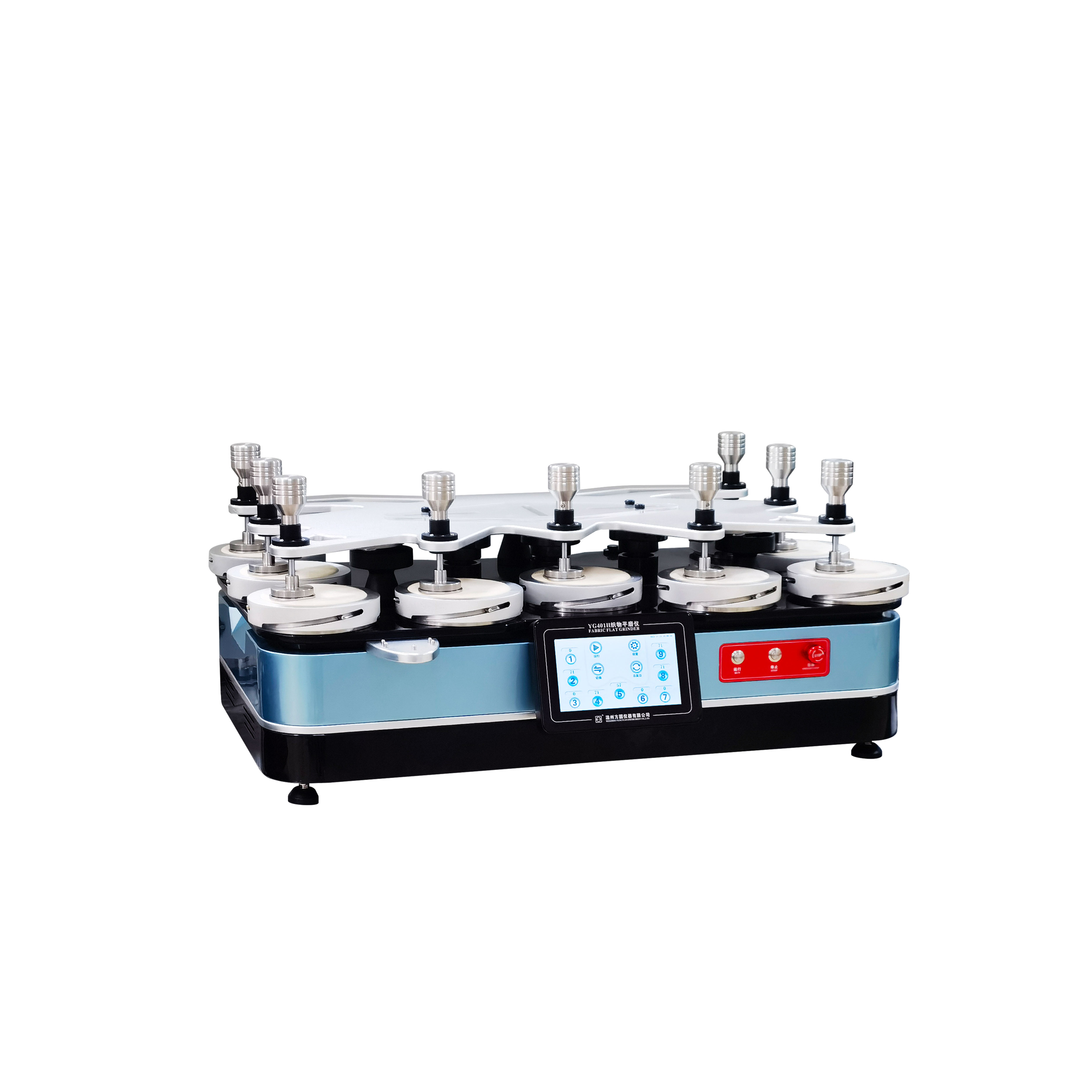 YG401H織物平磨儀 GB/T4802.2-2008,GB/T13775,GB/T21196.1,GB/T21196.2,GB/T21196.3,GB/T21196.4;FZ/T20020;ISO12945.2、12947;ASTM D 4966、4970、IWS TM112,可以增加球盤法測試功能(選配)等標準。